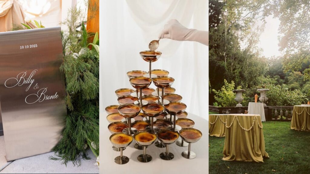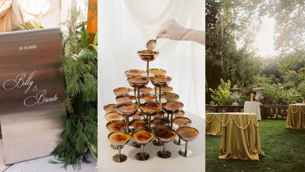 - Send them off with something sweet – Wedding dessert offerings are so creative and fantastic in 2026. You can’t go wrong with a stunning cake, but why not think outside the box with creative, interactive experiences like a cannoli bar, a chef-manned crème brûlée station, or passed beignets. Our message here is just: don’t skip the sweets. It’s the tried and true way to leave a good taste in your guests’ mouths!