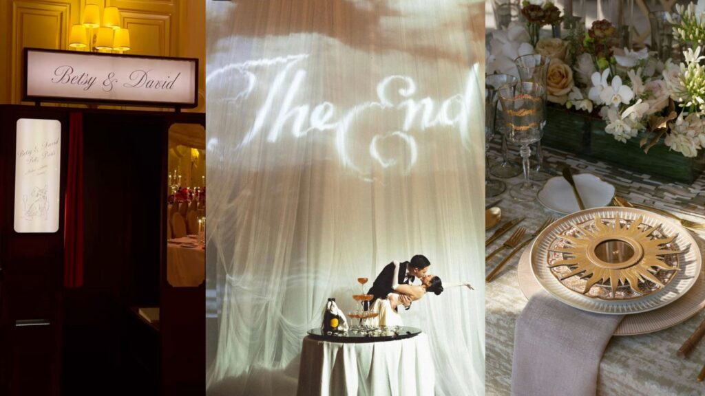 - Beautiful displays are an essential part of wedding day design, but also make sure that you’re designing with practical access in mind. If you envision guests snapping photos in front of your wedding sign and floral installs, make sure these elements are accessible and feature great lighting!