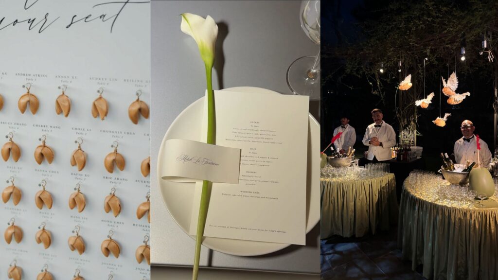 - Design signature cocktails – one of the most fun ways to customize your wedding reception, choose a bar menu that reflects your love story and you two as individuals. Guests love getting to participate in the day by choosing from a personalized menu, and a talented bar team (shoutout to our fabulous mixologists) can guide you in creating offerings that are dynamic enough to please a crowd, but also feel personal to you