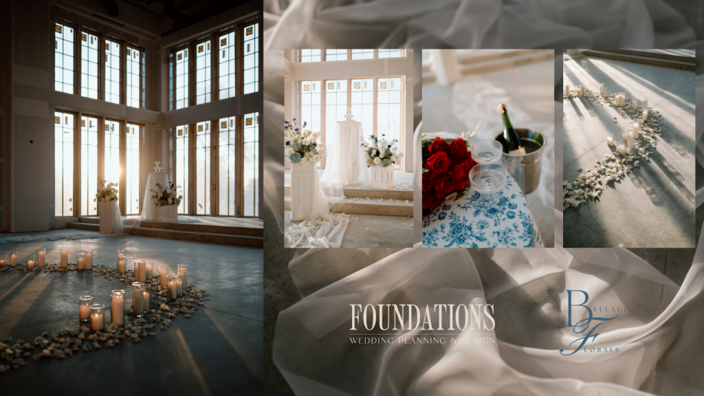What stood then as a construction site transformed, if only for a moment, into something entirely magical. With the vision of Tyler and the thoughtful collaboration of Foundations Wedding Planning & Design alongside Bellagio Florals, an unforgettable surprise unfolded that would mark the beginning of their next chapter.
